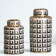 This jar's ultra-modern style is no optical illusion. Its stark black, white, grey, and copper color palette and geometric pattern make it quite the statement piece.